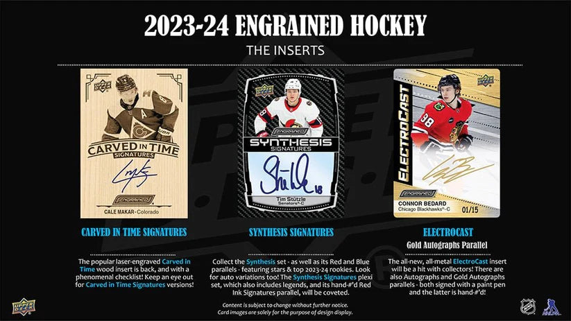 Engrained Hockey is back!! The return of this compelling brand to Upper Deck’s product lineup will be welcomed by collectors, who will be treated to the following with the 2023-24 edition: