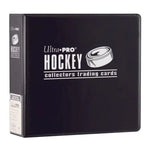 Premium album for standard size pages with hockey themed hot stamp foil on black cover. Reinforced 2" D-ring with booster for quick loading of pages. Albums include rich foam padding. Constructed with a clear indexing slot on the spine for easy organization.