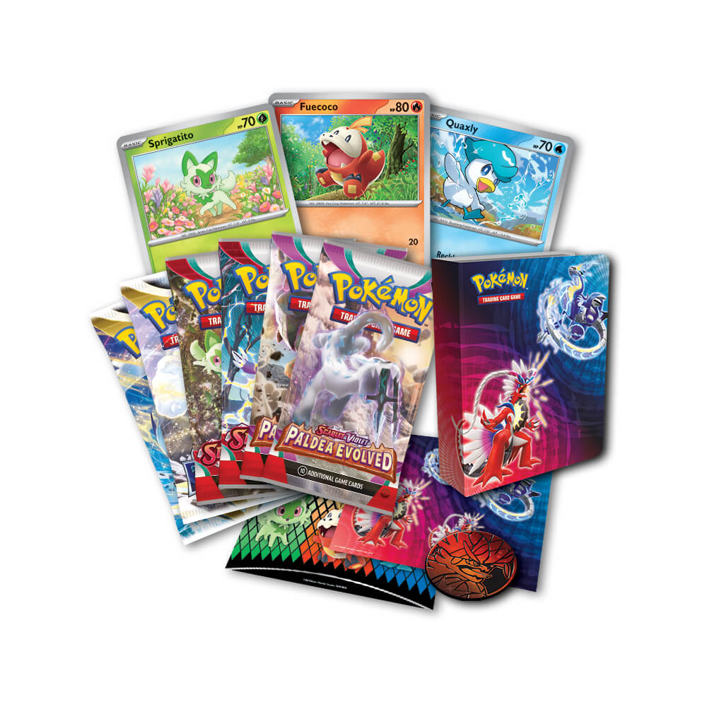 - 3 foil cards featuring Sprigatito, Fuecoco, and Quaxly
