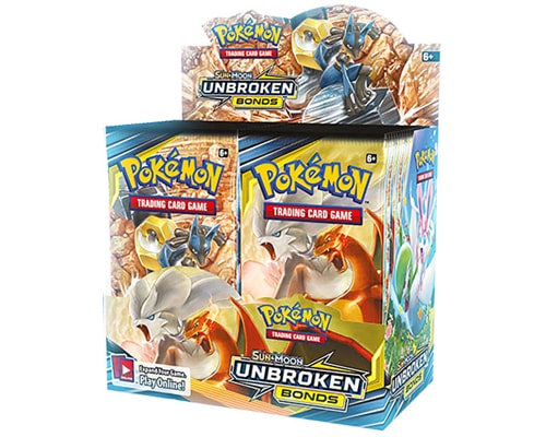 Each Pokemon Sun and Moon Unbroken Bonds booster box includes 36 booster packs! Each booster pack includes 10 cards!