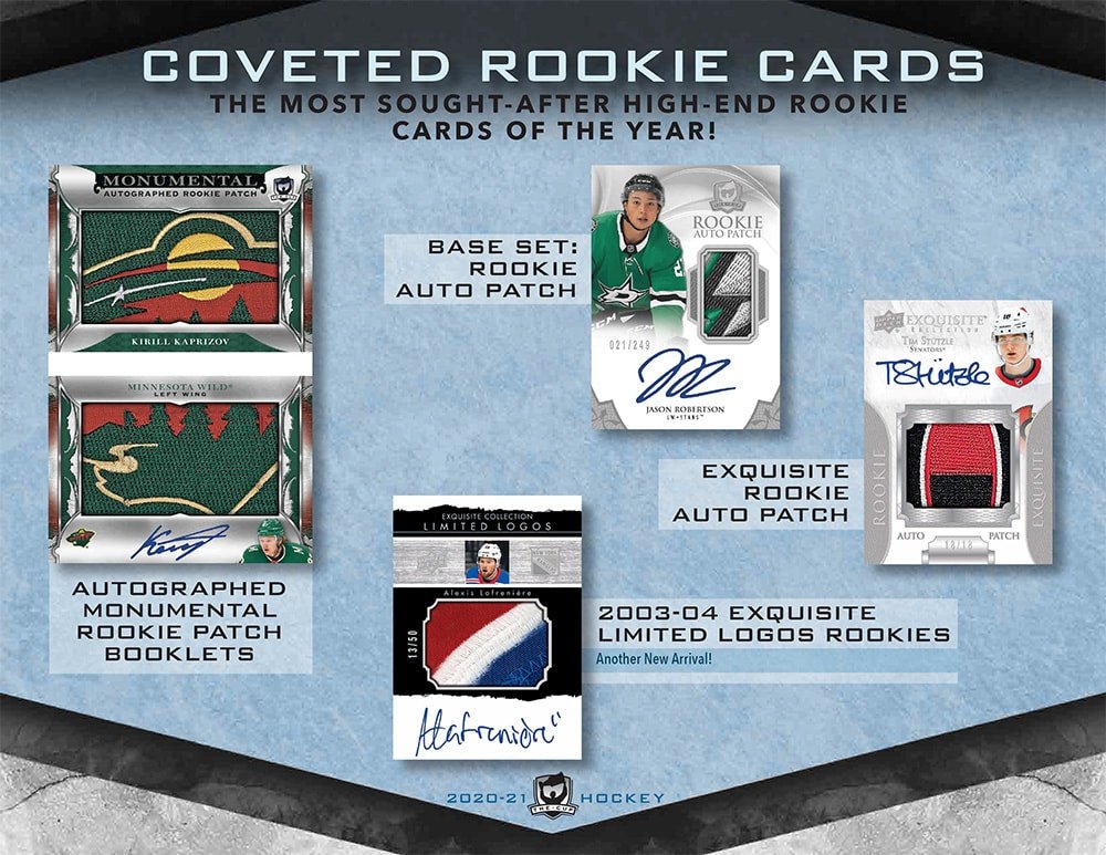 o    2020-21 Upper Deck Printing Plate Booklets: This set covers the complete 2020-21 Upper Deck Series 1 & 2 base set, including Young Guns®! Look for autographed versions!