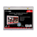 Ultra PRO's ONE-TOUCH holders are premium trading card storage cases designed as the final destination for your booklet cards, our two-piece ONE-TOUCH holders are uniquely designed with a slide-in hinge and double-tight magnetic closure. The holder provides UV-resistant, no-PVC, and acid-free protection to ensure your valuable hit retains its condition while under the display. Our ONE-TOUCH booklet holder comes with a minimalist two-piece display stand with an adjustable viewing angle. This model can hold vertical booklet cards.